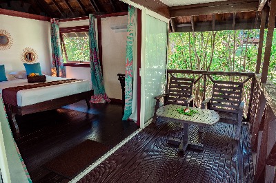 Découvrez le bungalow Motoï à la Pension Hibiscus, idéal pour un séjour au calme en Polynésie française.