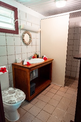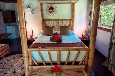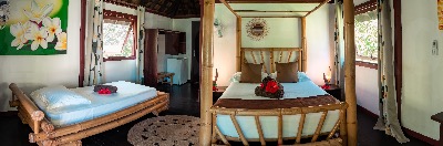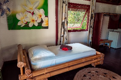 Découvrez le bungalow Tipanier à la Pension Hibiscus, idéal pour profiter d’un environnement naturel en Polynésie française.