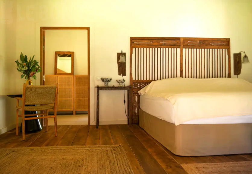 Faré situé en face de la cuisine commune, équipé d'un lit Queen size, d’un lit une place, une salle de bain avec wc.