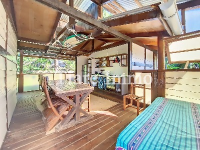 Une construction traditionnelle en bois, chaleureuse, ventilée naturellement, pensée pour une vie à la polynésienne, entre terre et mer.