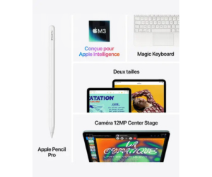 💻 Tablette Internet – Puce Apple M3 8-Core/GPU9-Core – RAM 8 Go – 256 Go – Écran Liquid Retina 11″ LED tactile – Wi-Fi 6E/Bluetooth 5.3 – Webcam – Touch ID – USB-C – iPadOS 18