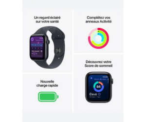 📱 Montre connectée – Aluminium – Étanche – GPS – Cardiofréquencemètre/Température – Écran OLED Retina Always On – Wi-Fi 4 / Bluetooth 5.3 – watchOS 26 – Bracelet sport M/L