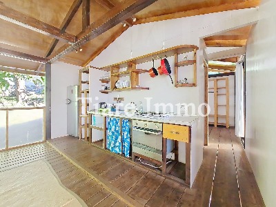 Une construction traditionnelle en bois, chaleureuse, ventilée naturellement, pensée pour une vie à la polynésienne, entre terre et mer.